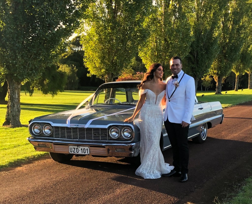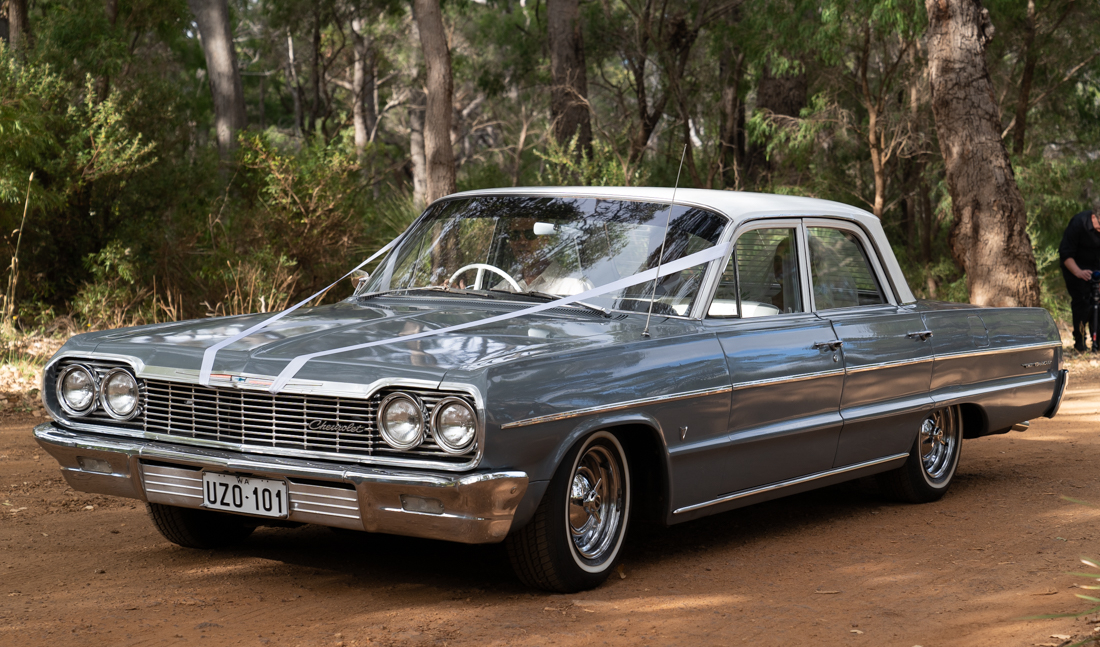 You will be picked you up from your accomodation in the Margaret River region and transferred in style to your wedding venue. This service area is from Margaret River townsite to Prevelly/Gnarabup, inclusive for a duration of approximately 1.5 hours which includes travel time from Margaret River to your pick up location. For your peace of mind the car is detailed before each event and ribbons on the car are included for that extra personal touch. With extra wide and comfortable bench seats the Belair can seat up to 5 bridal party comfortably or 4 luxuriously. This professional service starts at $550. Enquire for a quote for pick up locations outside of Margaret River.